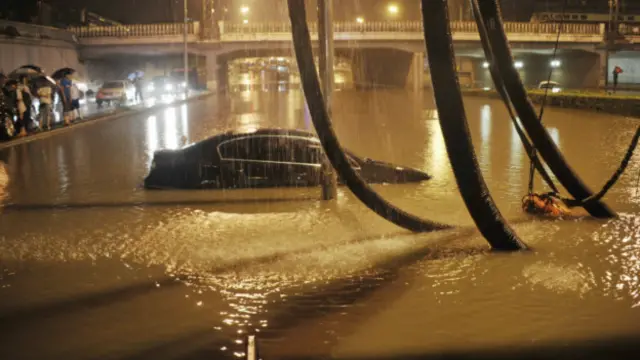 चीन की मीडिया के अनुसार शनिवार शाम से शुरू हुई बारिश अगले दिन तक होती रही और इससे सड़कों पर पानी भर गया.