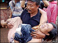 इंडोनेशिया में अधिकारियों का कहना है कि मध्य जावा में बुधवार तड़के हुए भूस्खलन से कम से कम 200 लोग मारे गए हैं. भारी बारिश के बाद हुए भूस्खलन से एक ही गाँव में लगभग सौ घर मिट्टी में दब गए. आशंका है कि मृतकों की संख्या बढ़ सकती है. भूस्खलन सिजेरुक नामक गाँव में हुआ जो राजधानी जकार्ता से 350 मील पूर्व में स्थित है. अधिकारियों के अनुसार 12 लोगों को ही बचाया जा सका. अधिकारियों के मुताबिक़ अब तक 14 शव बरामद हुए हैं. जिंदा बचे लोगों को ढूँढने के लिए भारी उपकरण भेजे गए हैं. इस सप्ताह के शुरु में पूर्वी जावा में अचानक आई बाढ़ और भूस्खलन से लगभग 60 लोगों की मौत हो गई थी. लापता मध्य जावा में जब भूस्खलन हुआ, उस वक़्त पुलिस और राहतकर्मी पूर्वी जावा में लोगों को बचाने में लगे थे. पूर्वी जावा में कई लोग अब भी लापता हैं. राजधानी जकार्ता से 500 मील पूर्व में इस हफ़्ते की भारी बारिश के बाद हज़ारों लोग बेघर हो गए हैं. इंडोनेशिया में नवंबर और मार्च के बीच अक्सर बाढ़ और भूस्खलन होता है. पर्यावरणविद कहते है कि हाल के वर्षों में जंगलों को काटने से भीषण बारिश के दौरान धरती की पानी को जज़्ब करने की क्षमता घट गई है और पहाड़ियों में भूस्खलन हो जाता है. | इससे जुड़ी ख़बरें बाग़ी सैनिक बैरकों में लौटेंगे27 जुलाई, 2003 | पहला पन्ना कठिन है अरोयो की डगर26 जुलाई, 2003 | पहला पन्ना फ़िलीपीन्स में मस्जिदों पर हमला03 अप्रैल, 2003 | पहला पन्ना | |||||||||||||||||||||||||||||||||||||||||||||||||||||||||||||||||||||||||||||||||||||||||||||