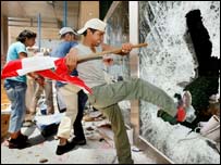 संयुक्त राष्ट्र इमारत के बाहर इकट्ठा हुए लोगों ने इसराइल और अमरीका के ख़िलाफ़ नारे लगाए और स्थिति में हस्तक्षेप न करने के लिए अरब देशों की निंदा की. बीबीसी संवाददाता का कहना है कि सुरक्षाबलों ने अब स्थिति पर निंयत्रण कर लिया है. इससे पहले लेबनान के प्रधानमंत्री फ़ुआद सिन्यूरा ने कहा कि वे मध्य पूर्व में चल रहे संकट को सुलझाने के लिए तब तक कोई बातचीत नहीं करेंगे जब तक तुरंत बिना शर्त के संघर्षविराम नहीं लागू किया जाता. इसके बाद अमरीकी विदेश मंत्री ने अपनी लेबनान यात्रा रद्द कर दी है. अमरीकी विदेश मंत्री कोंडोलीज़ा राइस की मध्य पूर्व यात्रा के दौरान भी हिज़बुल्ला और इसराइल के बीच संघर्ष में कोई कमी नहीं आई है और इसराइली हमलों ने लेबनान और सीरिया की मुख्य सीमा को बंद कर दिया है. इस बीच ग़ज़ा में फ़लस्तीनी डॉक्टरों ने कहा है कि वहाँ हुए ताज़ा हवाई हमलों में कई लोग घायल हुए हैं. इसराइल ने कहा है कि उसने ऐसी इमारतों पर हमला किया है जिनका इस्तेमाल हमास से जुड़े चरमपंथी कर रहे हैं. | इससे जुड़ी ख़बरें इसराइली हवाई हमले में 40 से ज़्यादा की मौत30 जुलाई, 2006 | पहला पन्ना 'लेबनान में सुरक्षा पट्टी बनाकर नियंत्रण'25 जुलाई, 2006 | पहला पन्ना इसराइली हमलों में पर्यवेक्षकों की मौत25 जुलाई, 2006 | पहला पन्ना लेबनान दौरे के बाद राइस इसराइल में24 जुलाई, 2006 | पहला पन्ना शांतिरक्षकों की नियुक्ति पर सहमत इसराइल23 जुलाई, 2006 | पहला पन्ना लेबनान में हिज़बुल्ला और इसराइल के बीच संघर्ष तेज़23 जुलाई, 2006 | पहला पन्ना इसराइल को अमरीकी बमों की खेप22 जुलाई, 2006 | पहला पन्ना | |||||||||||||||||||||||||||||||||||||||||||||||||||||||||||||||||||||||||||||||||||||||||||||