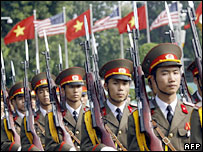 अमरीका के राष्ट्रपति जॉर्ज बुश एशिया-प्रशांत देशों के नेताओं को इस बात पर राज़ी करने का प्रयास कर रहे हैं कि वे उत्तर कोरिया के ख़िलाफ़ संयुक्त राष्ट्र प्रतिबंधों का पूरा समर्थन करें राष्ट्रपति बुश वियतनाम में एशिया प्रशांत आर्थिक सहयोग (एपेक) की बैठक में भाग ले रहे हैं. उत्तर कोरिया पर प्रतिबंध लगाने के मुद्दे पर उन्होंने दक्षिण कोरिया और जापान के नेताओं से मुलाक़ात की. वे रविवार को चीन और रूस के नेताओं से मिलने वाले हैं. चीन और रूस उत्तर कोरिया के ख़िलाफ़ कड़ा रुख अपनाने के ख़िलाफ़ हैं. दूसरी ओर अमरीका की विदेश मंत्री कोंडोलीज़ा राइस ने उत्तर कोरिया से अपील की कि वह वियतनाम का उदाहरण देखते हुए युद्ध से बचे. एपेक की बैठक में विश्व व्यापार संगठन (डब्लूटीओ) की बातचीत दोबारा शुरू करने की भी अपील की गई. एक संयुक्त बयान में एपेक के 24 सदस्य देशों ने कहा कि वे गतिरोध को दूर करने के लिए अपना मौजूदा रुख़ बदलने के लिए तैयार हैं. इन सदस्य देशों का कहना है कि वे कृषि सब्सिडी में कटौती करने के लिए वचनबद्ध हैं. इसी मुद्दे पर डब्लूटीओ की दोहा बैठक में गतिरोध खड़ा हो गया था. हनोई स्थित बीबीसी संवाददाता बिल हेटन का कहना है कि व्यापार वार्ता फिर से शुरू करने की दिशा में ये एक ईमानदार कोशिश है. उनका कहना है कि इस संबंध में अमरीका की वचनबद्धता यूरोपीय संघ के देशों को भी ऐसा करने के लिए प्रेरित करेगी. व्यापार बाधा इस सम्मेलन में अमरीकी विदेश मंत्री राइस ने अपील की कि सदस्य देश इलाक़े में व्यापार संबंधी बाधाओं को दूर करें. उन्होंने अमरीका के साथ क़रीबी रिश्तों के लिए वियतनाम की कोशिशों की सराहना की. उन्होंने कहा कि उत्तर कोरिया और बर्मा से अपील की कि वे भी वियतनाम का अनुसरण करें.