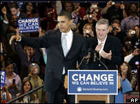 इससे जुड़ी ख़बरें अमरीकी राष्ट्रपति चुनाव: सुपर ट्यूसडे05 फ़रवरी, 2008 | पहला पन्ना ओबामा और हिलेरी आमने-सामने01 फ़रवरी, 2008 | पहला पन्ना जुलियानी राष्ट्रपति पद की दौड़ से हटे31 जनवरी, 2008 | पहला पन्ना रिपब्लिकन पार्टी की दौड़ में मैक्केन आगे30 जनवरी, 2008 | पहला पन्ना साउथ कैरोलाइना में ओबामा की बड़ी जीत26 जनवरी, 2008 | पहला पन्ना हिलेरी ने फिर ओबामा को हराया20 जनवरी, 2008 | पहला पन्ना ओबामा और हकबी लोगों की पसंद04 जनवरी, 2008 | पहला पन्ना अमरीका में राष्ट्रपति चुनाव: सवाल जवाब09 जनवरी, 2008 | पहला पन्ना | |||||||||||||||||||||||||||||||||||||||||||||||||||||||||||||||||||||||||||||||||||||||||||||