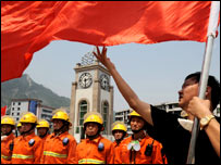 स्थानीय अधिकारी राहतकर्मियों की मारे जाने की बात तो स्वीकार कर रहे हैं लेकिन उन्होंने कोई संख्या नहीं बताई है. शिन्हुआ समाचार एजेंसी ने एक परिवहन मंत्रालय के अधिकारी के हवाले से बताया है कि ये राहतकर्मी सड़कों की मरम्मत कर रहे थे. अभी भी कई इलाक़ों में भूकंप के झटके महसूस किए जा रहे हैं. इस कारण राहतकार्यों पर असर पड़ रहा है. रविवार को सिचुआन प्रांत के मियायांग काउंटी में आए भूकंप में तीन लोगों की मौत हो गई और एक हज़ार से ज़्यादा घायल हो गए. सिचुआन प्रांत में हो रही लगातार बारिश के कारण बाढ़ का ख़तरा पैदा हो गया है और ज़मीन धँसने की आशंका भी व्यक्त की जा रही है. अब राहत कार्यों में सारा ध्यान खाना उपलब्ध कराना, चिकित्सा सेवा और प्रभावित लोगों के लिए रहने का प्रबंध करने पर है. | इससे जुड़ी ख़बरें चीन में तीन दिनों के शोक की घोषणा18 मई, 2008 | पहला पन्ना चीन में राहत कार्यों में तेज़ी आई18 मई, 2008 | पहला पन्ना अफ़रा-तफ़री के बाद बचाव कार्य शुरू17 मई, 2008 | पहला पन्ना भूकंप के कारण 50 लाख लोग बेघर16 मई, 2008 | पहला पन्ना चीन में मृतक संख्या '50 हज़ार'15 मई, 2008 | पहला पन्ना चीन में मृतक संख्या 15 हज़ार14 मई, 2008 | पहला पन्ना चीन में हज़ारों हताहत, राहत कार्यों में कुछ तेज़ी13 मई, 2008 | पहला पन्ना तबाही का मंजर: आंखों देखा हाल..13 मई, 2008 | पहला पन्ना | |||||||||||||||||||||||||||||||||||||||||||||||||||||||||||||||||||||||||||||||||||||||||||||
