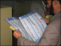लोगों ने सुबह ही मतदान केंद्रों में जाकर मतदान करना शुरु कर दिया. मतदान की प्रक्रिया शाम चार बजे तक चली. उल्लेखनीय है कि संसद की 249 और 34 प्रांतीय परिषदों के लिए चुनाव हो रहे हैं. लोकतंत्र की बहाली के लिए पहली बार हो रहे इन चुनावों के लिए उम्मीदवारों की बड़ी भीड़ थी. संसद के लिए 2800 और प्रांतीय परिषदों के लिए 3000 उम्मीदवार चुनाव मैदान में उतरे. इन चुनावों में महिलाओं को 25 प्रतिशत सीटों में आरक्षण भी दिया गया है. अफ़ग़ानिस्तान के ज़ाबुल और कांधार समेत सभी दक्षिणी प्रांतों में सुरक्षा को लेकर बड़ी चिंता जताई गई थी क्योंकि वहाँ अभी भी तालेबानों और क़बायली नेताओं का बड़ा दबदबा है. अमरीकी राजदूत रेनॉल्ड न्यूमैन ने भी काबुल के कुछ मतदान केंद्रों में जाकर मतदान प्रक्रिया का जायज़ा लिया. बड़े मतपत्र