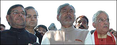 बिहार विधानसभा की कुल सीटें: 243 राष्ट्रीय जनतांत्रिक गठबंधन- 143 1. आदापुर-श्याम बिहारी प्रसाद ( जनता दल यूनाइटेड) 2. आलमनगर-नरेंद्र नारायण यादव (जनता दल यूनाइटेड) 3. अलौली- पशुपति कुमार पारस (लोकजनशक्ति पार्टी) 4. अमरपुर-सुरेंद्र प्रसाद सिंह (राष्ट्रीय जनता दल) 5. अमौर-अब्दुल जलील मस्तान (कांग्रेस) 6. अररिया-प्रदीप कुमार सिंह (भाजपा) 7. आरा-अमरेंद्र प्रताप सिंह (भाजपा) 8. अरवल-दुलार चंद सिंह (लोकजनशक्ति पार्टी) 9. अस्थावन-जीतेंद्र कुमार (जनता दल यूनाइटेड) 10. अटरी-कुंती देवी (राष्ट्रीय जनता दल) 11. औरई-अर्जुन राय (जनता दल यूनाइटेड) 12. औरंगाबाद-रामाधार सिंह (भाजपा) 13. बाबूबरही-कपिल देब कामत (जनता दल यूनाइटेड) 14. बछवारा-रामदेव राय (कांग्रेस) 15. बगहा-पूर्णमासी राम (जनता दल यूनाइटेड) 16. बहादुरगंज-मोहम्मद तौसीफ़ आलम (कांग्रेस) 17. बहेरा- अब्दुल बारी सिद्दीक़ी (राष्ट्रीय जनता दल) 18. बहेरी-हरेकृष्ण यादव (राष्ट्रीय जनता दल) 19. बैकुंठपुर-देवदत्त प्रसाद (राष्ट्रीय जनता दल) 20. बैसी-सैयद रुकनुद्दीन (निर्दलीय) 21. बखरी-रामविनोद पासवान (सीपीआई) 22. बख्तियारपुर-विनोद यादव (भाजपा) 23. बलिया-जमशेद अशरफ़ (जनता दल यूनाइटेड) 24. बनियापुर-मनोरंजन सिंह (जनता दल यूनाइटेड) 25. बाँका-रामनारायण मंडल (भाजपा) 26. बनमंखी-कृष्ण कुमार ऋषि (भाजपा) 27. बाराचट्टी-जीतन राम मांझी (जनता दल यूनाइटेड) 28. बरारी-विभाष चंद्र चौधरी (भाजपा) 29. बरौली-राम प्रवेश राय (भाजपा) 30. बरौनी-राजेंद्र प्रसाद सिंह (सीपीआई) 31. बारबिघा-रामसुंदर राम कनौजिया (जनता दल यूनाइटेड) 32. बाढ़-ज्ञानेंद्र कुमार सिंह (जनता दल यूनाइटेड) 33. बरहारा-आशा देवी (जनता दल यूनाइटेड) 34. बरसोई-मुनाफ़ आलम( सीपीआई-एमएल) 35. बरूराज-शशि कुमार राय (जनता दल यूनाइटेड) 36. बसंतपुर-मानिकचंद राय (राष्ट्रीय जनता दल) 37. बथनाहा-नगीना देवी (लोकजनशक्ति पार्टी) 38. बेगूसराय-भोला सिंह (भाजपा) 39. बेलागंज-सुरेंद्र प्रसाद यादव (राष्ट्रीय जनता दल) 40. बेलहर-जर्नादन मांझी (जनता दल यूनाइटेड) 41. बेलसंड-संजय कुमार गुप्ता (राष्ट्रीय जनता दल) 42. बेनीपट्टी-शालिग्राम यादव (जनता दल यूनाइटेड) 43. बेतिया-रेणू देवी (भाजपा) 44. भभुआ-रामचंद्र सिंह यादव (बसपा) 45. भागलपुर-अश्विनी कुमार चौबे (भाजपा) 46. भोरे-अनिल कुमार (राष्ट्रीय जनता दल) 47. बिभूतपुर-रामदेव वर्मा (सीपीएम) 48. बीहर-डॉक्टर सुनील कुमार (जनता दल यूनाइटेड) 49. बिहपुर-शैलेश कुमार (राष्ट्रीय जनता दल) 50. बिक्रम-अनिल कुमार (भाजपा) 51. बिक्रमगंज-जय कुमार सिंह (जनता दल यूनाइटेड) 52. बिसफी- हरिभूषण ठाकुर (निर्दलीय) 53. बोचाहा-रमई राम (राष्ट्रीय जनता दल) 54. बोधगया- हरि मांझी (भाजपा) 55. ब्रह्मपुर-अजित चौधरी (राष्ट्रीय जनता दल) 56. बक्सर- हृदय नारायण सिंह (बसपा) 57. चैनपुर-महाबलि सिंह (राष्ट्रीय जनता दल) 58. चकई-फाल्गुनी प्रसाद यादव( भाजपा) 59. चंडी-हरिनारायण 
