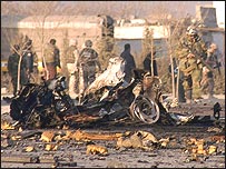अफ़ग़ानिस्तान में हुए एक बम धमाके में कम से कम 20 लोग मारे गए हैं और अनेक लोग घायल हो गए हैं. अफ़ग़ान अधिकारियों को शक है कि यह आत्मघाती हमला हो सकता है. यह बम धमाका पाकिस्तान की सीमा से लगे क़स्बे स्पिन बुल्दाक में हुआ है. अफ़ग़ानिस्तान के दक्षिणी कंधार प्रांत के गवर्नर असदुल्लाह ख़ालिद ने बताया कि कुश्ती का मुक़ाबला देखने के लिए भीड़ जमा थी, हमलावर एक मोटरसाइकिल पर सवार होकर आया और उसने भीड़ में धमाका कर दिया. कंधार प्रांत में पिछले दिनों दो और ऐसे धमाके हो चुके हैं, ताज़ा धमाके को इस सिलसिले की एक और कड़ी माना जा रहा है. इससे पहले कंधार में हुए संदिग्ध आत्मघाती बम हमले में तीन पुलिसकर्मियों की मौत हो गई थी और चार अन्य लोग घायल हो गए थे. रविवार को कंधार शहर के ही पूर्वी इलाक़े में हुए हमले में दो अफ़ग़ान नागरिकों सहित कनाडा के एक वरिष्ठ कूटनयिक ग्लेन बेरी की मौत हो गई थी. अफ़ग़ानिस्तान के राष्ट्रपति हामिद करज़ई ने इन संदिग्ध आत्मघाती हमलों पर चिंता प्रकट की थी. हामिद करज़ई ने यह भी कहा कि उन्हें ख़ुफ़िया रिपोर्टें मिली हैं जिनके मुताबिक़ आत्मघाती बम हमलावरों को सीमावर्ती इलाक़ों में ट्रेनिंग दी जा रही है. | इससे जुड़ी ख़बरें चरमपंथी हमले मे 18 पुलिसकर्मी मृत11 अक्तूबर, 2005 | भारत और पड़ोस तालेबान के प्रवक्ता हकीमी गिरफ़्तार04 अक्तूबर, 2005 | भारत और पड़ोस 'तालेबान का हमले का दावा झूठा है'29 सितंबर, 2005 | भारत और पड़ोस हेरोइन लेकर उड़ा ग्लाइडर मार गिराया23 अगस्त, 2005 | भारत और पड़ोस अफ़ग़ानिस्तान में चार अमरीकी फौजी मरे21 अगस्त, 2005 | भारत और पड़ोस | ||||||||||||||||||||||||||||||||||||||||||||||||||||||||||||||||||||||||||||||||||||||||||