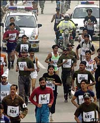 पाकिस्तान के लाहौर शहर में भारी विवाद और कड़ी सुरक्षा के बीच मैराथन दौड़ शांतिपूर्ण तरीक़े से संपन्न हो गई. मैराथन में हिस्सा लेने वाले लोगों से अधिक संख्या में पुलिसकर्मी उनकी सुरक्षा के लिए तैनात किए थे, लगभग हर धावक के साथ सुरक्षाकर्मी मोटरसाइकिल पर चल रहे थे. इस दौड़ में लगभग 500 महिलाओं ने भी हिस्सा लिया जिनके भाग लेने पर कट्टरपंथी इस्लामी गुट विरोध प्रदर्शन कर रहे थे. उनका कहना था कि मर्दों और औरतों का एक साथ दौड़ना गैर इस्लामी है. माना जा रहा था कि इस मैराथन दौड़ में 2000 हज़ार महिलाएँ हिस्सा लेंगी लेकिन तनाव के कारण सिर्फ़ पाँच सौ महिलाएँ ही सामने आईं. इस दौड़ में लगभग 60 विदेशी धावकों ने भी हिस्सा लिया है. कड़ी सुरक्षा व्यवस्था के कारण मैराथन देखने की अनुमति किसी को नहीं मिल सकी, धावकों का हौसला बढ़ाने वाला कोई नहीं था. इस दौड़ से जुटाई गई रक़म को भूकंप प्रभावित इलाक़ों में मदद के लिए ख़र्च किया जाएगा. लाहौर मैराथन में तीन श्रेणियाँ थीं, सिर्फ़ मर्दों की दौड़, मर्द-औरतों की मिली-जुली दौड़ और विकलांग लोगों के अलग रेस का आयोजन किया गया था. लाहौर में आयोजित यह दूसरा अंतरराष्ट्रीय मैराथन है. विरोध पिछले साल भी पाकिस्तान में कुछ शहरों में इस तरह का मैराथन करने का प्रयास किया गया था लेकिन हिंसक प्रदर्शनों के कारण सरकार को कई जगह इसे रद्द करना पड़ा. पिछले ही वर्ष पाकिस्तानी पंजाब के गुजराँवाला शहर में आयोजित मैराथन को रोकने की कोशिश की गई थी और हिंसा में एक व्यक्ति की मृत्यु भी हो गई थी. इस बार भी मैराथन के विरोध में शहर में प्रदर्शन हुए. पुलिस ने स्थिति को नियंत्रित करने के लिए सैकड़ों लोगों को गिरफ़्तार भी किया. लाहौर के इस्लामिया कॉलेज से शुरू हुए विरोध प्रदर्शन को रोकने के लिए पुलिस को आँसू गैस के गोले छोड़ने पड़े और लाठी चार्ज का सहारा लेना पड़ा. | इससे जुड़ी ख़बरें लाहौर मैराथन का ज़ोरदार विरोध27 जनवरी, 2006 | भारत और पड़ोस पाबंदी के बावजूद महिलाओं ने दौड़ लगाई21 मई, 2005 | भारत और पड़ोस पाकिस्तानी पुलिस की कार्रवाई की निंदा15 मई, 2005 | भारत और पड़ोस लाहौर में धमाके, पाँच की मौत22 सितंबर, 2005 | भारत और पड़ोस | ||||||||||||||||||||||||||||||||||||||||||||||||||||||||||||||||||||||||||||||||||||||||||