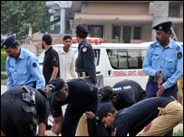 पाकिस्तान की राजधानी इस्लामाबाद में एक बम धमाके में 19 लोग मारे गए हैं जिनमें से ज़्यादातर पुलिसकर्मी हैं. इस्लामाबाद से बीबीसी के स्थानीय संवाददाता शहज़ाद मलिक ने बताया कि मरनेवालों में 14 पुलिसकर्मी हैं और पाँच आम नागरिक. पुलिस का कहना है कि यह एक आत्मघाती बम हमला था जिसमें जान-बूझकर पुलिसकर्मियों को निशाना बनाया गया. इस धमाके को लाल मस्जिद पर हुई सैनिक कार्रवाई से जोड़कर देखा जा रहा है, यह धमाका मस्जिद के निकट स्थित थाने के बाहर हुआ है. यह धमाका ऐसे समय पर हुआ है जबकि इस्लामाबाद में रविवार को देश भर के मदरसों के छात्र लाल मस्जिद पर सैनिक कार्रवाई की बरसी के मौक़े पर विरोध प्रदर्शन कर रहे थे. समाचार एजेंसी एएफ़पी को एक वरिष्ठ पुलिस अधिकारी ने बताया, "लाल मस्जिद की बरसी के मौक़े पर आयोजित रैली के ख़त्म होने के पंद्रह मिनट बाद धमाका हुआ, यह धमाका लाल मस्जिद कुछ सौ मीटर की दूरी पर हुआ." रैली में हिस्सा लेने वालों ने मस्जिद पर सैनिक कार्रवाई करने का आदेश देने वालों को सज़ा दिए जाने की माँग की और अमरीका के ख़िलाफ़ जंग जारी रखने के नारे भी लगाए. इस सम्मेलन में एक प्रस्ताव पारित किया गया है कि जिसमें कहा गया है कि परवेज़ मुशर्रफ़ ख़ुद लाल मस्जिद पर कार्रवाई के लिए ज़िम्मेदार थे इसलिए उन्हें क़ातिल क़रार देते हुए सरेआम फाँसी दी जाए. लाल मस्जिद में रविवार को राष्ट्रीय सम्मेलन का आयोजन किया गया है जिसमें देश भर के मदरसों में पढ़ने वाले हज़ारों छात्र हिस्सा ले रहे हैं. अब से एक साल पहले लाल मस्जिद में शरण लेने वाले चरमपंथियों को बाहर निकालने के सेना ने धावा बोला था जिसमें 100 से अधिक लोग मारे गए थे, मारे जाने वालों में लाल मस्जिद के इमाम अब्दुल रशीद गाज़ी भी शामिल थे. | इससे जुड़ी ख़बरें इस्लामाबाद में विदेशी रेस्टोरेंट में विस्फोट15 मार्च, 2008 | भारत और पड़ोस पाकिस्तान में जातीय हिंसा में 40 मरे27 मार्च, 2008 | भारत और पड़ोस पाकिस्तान के परमाणु संयंत्र में धमाका08 अप्रैल, 2008 | भारत और पड़ोस सूबा सरहद में धमाका, 13 की मौत18 मई, 2008 | भारत और पड़ोस पाकिस्तान में बम हमला, पाँच घायल20 मई, 2008 | भारत और पड़ोस पेशावर में दो धमाके, तीन मारे गए24 मई, 2008 | भारत और पड़ोस इस्लामाबाद में विस्फोट, छह की मौत02 जून, 2008 | भारत और पड़ोस पाकिस्तान में धमाका, पाँच की मौत07 जून, 2008 | भारत और पड़ोस | ||||||||||||||||||||||||||||||||||||||||||||||||||||||||||||||||||||||||||||||||||||||||||