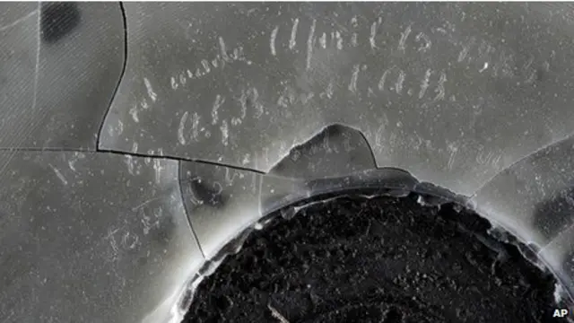 मोम डिस्क पर की गई रिकॉर्डिंग में टेलीफोन के आविष्कारक ये कहते हुए सुने जा सकते हैं, "मेरी आवाज़ सुनो, मैं एलेक्ज़ेंडरग्राहम बेल."