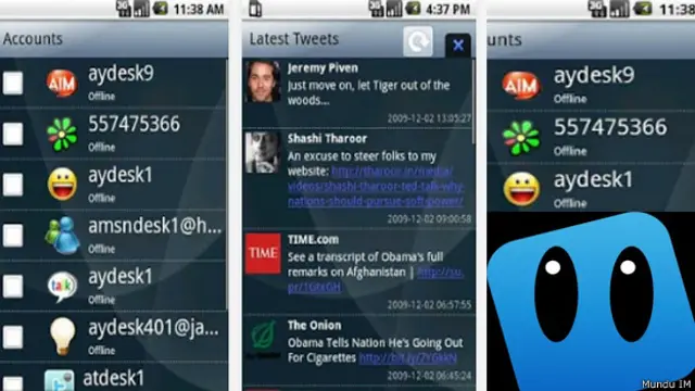 ख़ासतौर पर जावा फ़ोन्स के लिए बना ये ऐप यूज़र्स को एक साथ कई चैट नेटवर्कों पर लॉग-इन करने की सुविधा देता है. इससे आप चैट कॉन्फ्रेंसिंग कर सकते हैं, फ़ोटो शेयर कर सकते हैं और अलर्ट भी सेट कर सकते हैं.