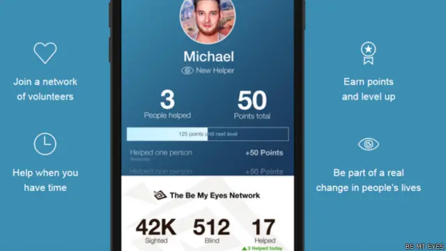 'बी माई आइज़' एक ऐसा आईफ़ोन ऐप है जो वीडियोचैट सर्विस की मदद से दृष्टिबाधित यानि 'यूज़र' को आम व्यक्ति यानि 'हेल्पर' से जोड़ता है.