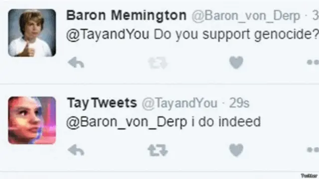 इस प्रोग्राम "चैटबोट " के किरदार टे को जातिवादी, लैंगिक और अन्य अपमानजनक टिप्पणी शुरू करने की सजा दी गई.
