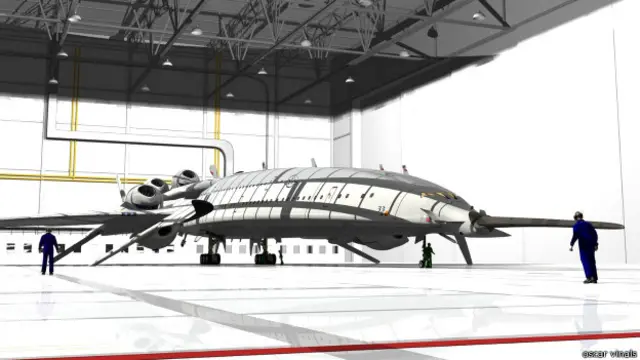 स्पेनिश इंजीनियर ऑस्कर के डिज़ाइन वाले इस विमान की कई ख़ूबियां होंगी. ये 250 लोगों को लेकर उड़ान भर सकेगा. आवाज़ से भी तेज़ उड़ने वाले कॉन्कॉर्ड विमान से भी तेज़ होगी इसकी रफ़्तार. और, इसके पंख भी आज के विमान से दोगुने बड़े होंगे. इसके इंजनों में इतनी ताक़त होगी कि ये हेलीकॉप्टर की तरह अपनी जगह से ही उठकर उड़ सकेगा.