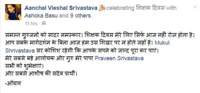 अंचल श्रीवास्तव ने फ़ेसबुक पर लिखा, मेरे सबसे बड़े गुरु और आलोचक मेरे पापा.