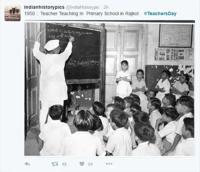 इंडिया हिस्ट्रोपिक हैंडल ने एक तस्वीर ट्वीट की है, जिसे 1950 के राजकोट के एक स्कूल की होने का दावा किया गया है.