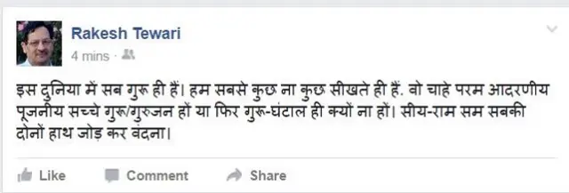 राकेश तिवारी ने फ़ेसबुक पर लिखा है, ''हम सबसे कुछ न कुछ सीखते हैं, फिर चाहे वो गुरु हो या फिर गुरु घंटाल.''