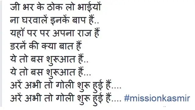 कविता में यहां पर #missionkasmir हैशटेग का इस्तेमाल किया गया है.