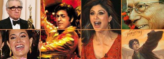 वो साल जिसमें रियलिटी शो जैसे छोटे पर्दे के मूलमंत्र बन गए और ऐसे ही एक अंतरराष्ट्रीय रियलिटी शो बिग ब्रदर की विजेता बनी अभिनेत्री शिल्पा शेट्टी. साहित्य में महिलाओं का दबदबा रहा- नोबेल पर क़ब्ज़ा हुआ लेखिका डॉरिस लैसिंग का तो बुकर पुरस्कार जीता लेखिका ऐन एनराइट ने. उधर चीन ने दिखाया कि उसके पास आर्थिक शक्ति ही नहीं, सौंदर्य भी भरपूर है उसके यहाँ. चीन की झांग जी के सर सजा मिस वर्ल्ड का ताज. कलाकारों का सम्मान हुआ तो कभी-कभी अभिव्यक्ति की स्वतंत्रता और समाज आमने-सामने खड़े भी दिखाए दिए....मसलन बांग्लादेशी लेखिका तस्लीमा नसरीन का मामला. हँसी-खुशी, तनाव और गौरव के इन पलों के बीच ऐसे लम्हे भी आए जो आँख नम करके चले गए. साहित्यकार कमलेश्वर और फ़िल्मकार जीपी सिप्पी ने दुनिया को अलविदा कहा तो संगीतकार ओपी नैयर जग सूना कर चले गए, वहीं ऑपेरा गायक पावरोत्ती के प्रशंसकों ने उन्हें नम आँखों से विदाई दी. कला जगत ने वर्ष 2007 में कई खट्टे-मीठे पलों का स्वाद भी चखा- ऐश-अभिषेक की शादी, ब्रिटनी स्पीयर्स के कारनामे, शाहरुख खान का सिक्स पैक, तो कभी कोर्ट कचहरी के चक्कर लगाते संजय दत्त और सलमान खान जैसे सितारे. वर्ष 2007 में कला जगत के इन्हीं चंद लम्हों को क़ैद करती बीबीसी संवाददाता वंदना की विशेष प्रस्तुति. | |||||||||||||||||||||||||||||||||||||||||||||||||||||||||||||||||||||||||||||||||