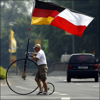 जर्मनी और पोलैंड के ध्वज एक साथ