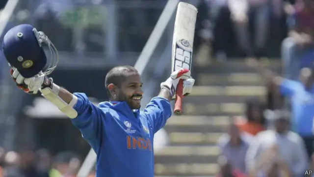 शिखर धवन डटकर बल्लेबाज़ी करते रहे और केवल 81 गेंदों पर अपना शतक पूरा किया. लेकिन धवन 114 के निजी स्कोर पर जेपी डुमिनि की गेंद पर कैच आउट हो गए.