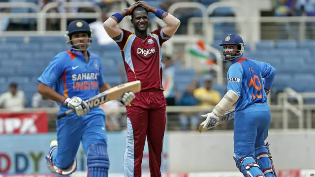 वेस्टइंडीज़ को जीत के लिए 230 रनों का लक्ष्य मिला. क्रिस गेल के सस्ते में आउट होने के बाद भारत ने दबाव बनाया और एक समय वेस्टइंडीज़ का स्कोर था तीन विकेट पर 26 रन. लेकिन जॉनसन चार्ल्स और डेरेन ब्रैवो ने न सिर्फ़ वेस्टइंडीज़ की पारी संभाली बल्कि टीम को जीत की स्थिति में पहुँचाया. लेकिन दोनों के आउट होते ही एक बार फिर स्थिति पलट गई. लेकिन आख़िरकार वेस्टइंडीज़ एक विकेट से मैच जीतने में सफल रहा.