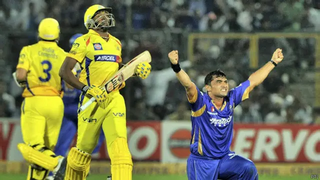 इसके अलावा उन्होंने चेन्नई सुपर किंग्स जैसी मज़बूत टीम के ख़िलाफ़ केवल 10 रन देकर तीन विकेट लिए. इनमें सुरेश रैना, एस बद्रीनाथ और ट्वेंटी-ट्वेंटी के सबसे ख़तरनाक बल्लेबाज़ों में से एक वेस्टइंडीज़ के ड्वेन ब्रावो का विकेट शामिल था.