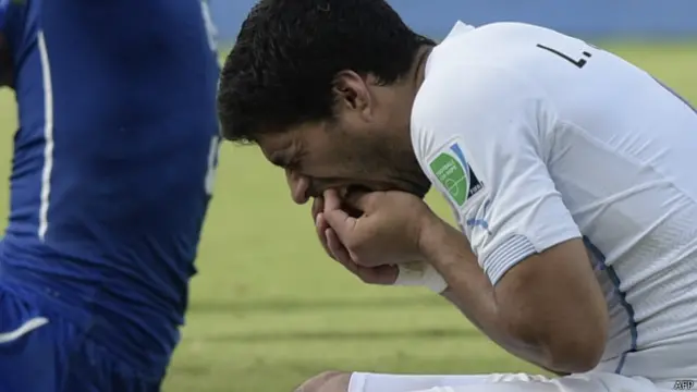 उन पर इटली के मिडफ़ील्डर जॉर्जियो किएलीनी पर दांत गड़ाने या काटने का आरोप लगा है. सुआरेज़ के करियर में तीसरी बार अपने विपक्षी खिलाड़ी को दांत से काटने का आरोप लगा है.