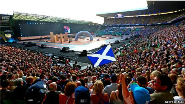 सेल्टिक पार्क में आयोजित इस उद्घाटन समारोह में क़रीब दो हज़ार कलाकारों ने हिस्सा लिया. सेल्टिक पार्क को स्कॉटलैंड में फ़ुटबॉल के घर के रूप में जाना जाता है.