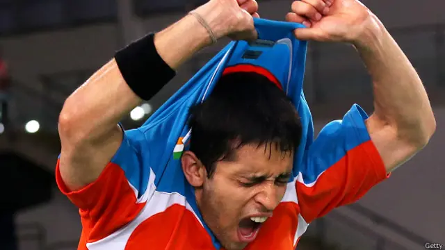 जीत से बेहद ख़ुश कश्यप ने स्टेडियम में ही अपनी टीशर्ट निकालकर लहराई और इसके बाद तिरंगा पहनकर बाहर निकले.