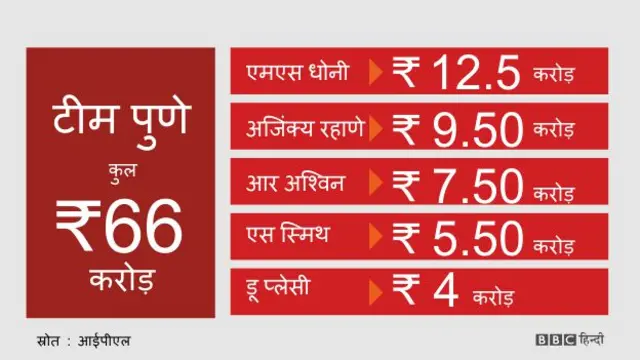 धोनी के अलावा अजिंक्य रहाणे, आर अश्विन, स्टीव स्मिथ और फ़फ़ डू प्लेसी पुणे के लिए खेलेंगे.