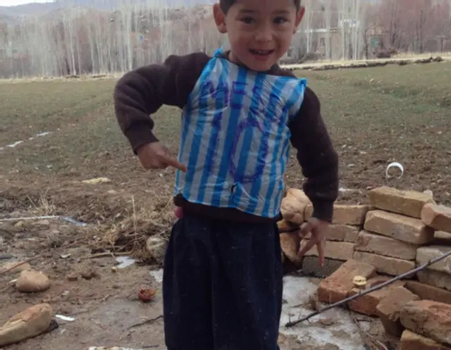 बच्चों के लिए संयुक्त राष्ट्र की एजेंसी यूनिसेफ़ ने मुरतजा अहमदी की तस्वीर पोस्ट की है जिसमें उन्होंने मैसी के हस्ताक्षर वाली टी शर्ट पहनी हुई है.