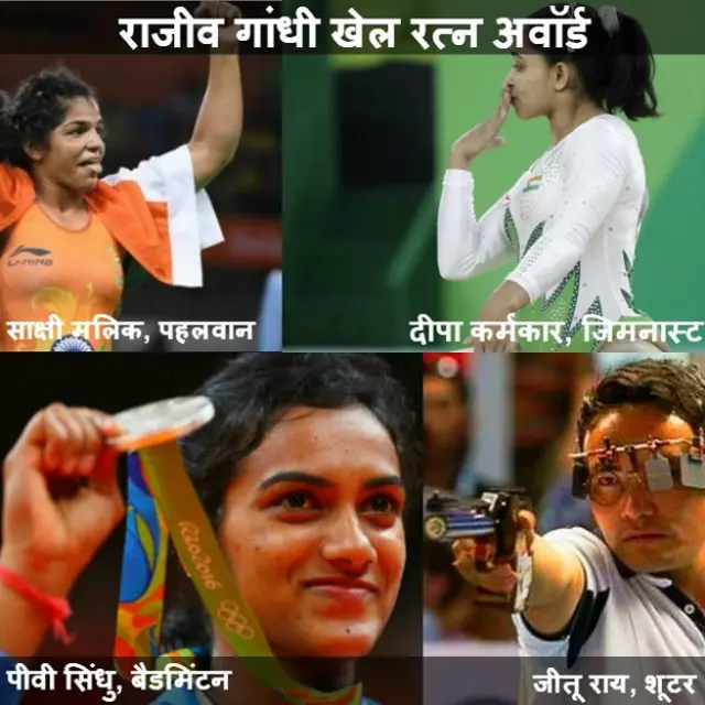 बैडमिंटन खिलाड़ी पीवी सिंधु, पहलवान साक्षी मलिक, निशानेबाज़ जीतू राय और जिमनास्ट दीपा कर्मकार को राजीव गांधी खेल रत्न पुरस्कार देने की घोषणा की गई है.