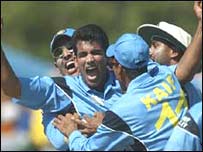 मुंबई में शुरू हुए वनडे मैच में ऑस्ट्रेलिया ने टॉस जीतकर पहले बल्लेबाज़ी करने का फ़ैसला किया. लेकिन ज़हीर ख़ान ने अपने पहले ही ओवर में ख़तरनाक मैथ्यू हेडन को आउट कर भारत को बड़ी सफलता दिलाई. हालाँकि हेडन का विकेट गिरने के बावजूद गिलक्रिस्ट ने अपनी तेज़ बल्लेबाज़ी जारी रखी, लेकिन कप्तान द्रविड़ का हरभजन से गेंदबाज़ी कराने का फ़ैसला सही साबित हुआ. गिलक्रिस्ट हरभजन की गेंद पर कैफ़ के हाथों कैच आउट हो गए. उन्होंने 30 गेंदों पर आठ चौकों की मदद से 41 रन बनाए. कप्तान रिकी पोंटिंग को अजित अगरकर ने 31 रन के निजी स्कोर पर एलबीडब्लू किया. एंड्रयू साइमंड्स 48 रन पर युवराज के शिकार बने. भारत ने इससे पहले ग्वालियर वनडे में ऑस्ट्रेलिया को 37 रनों से हराया था, जबकि न्यूज़ीलैंड के ख़िलाफ़ चेन्नई में भारत का पहला मैच बारिश की भेंट चढ़ गया था. टूर्नामेंट के एक अन्य मैच में ऑस्ट्रेलिया ने न्यूज़ीलैंड को आठ विकेट से हराया था. यानी इस टूर्नामेंट में अभी तक दोनों टीमें एक-एक मैच जीत चुकी है. लेकिन भारत एक भी मैच नहीं हारा है. ग्वालियर में भारत ने शानदार बल्लेबाज़ी का प्रदर्शन किया था और सचिन तेंदुलकर और वीवीएस लक्ष्मण ने शानदार सेंचुरी लगाई थी. मुंबई में भी लोगों को अपेक्षा है कि सचिन एक बार फिर अपने बल्ले का कमाल दिखाएँगे. सौरभ गांगुली अपनी जाँघ पर हुए घाव के ऑपरेशन के बाद अभी भी आराम कर रहे हैं और उनकी जगह टीम की कप्तानी कर रहे हैं राहुल द्रविड़. द्रविड़ ने ग्वालियर की टीम में कोई परिवर्तन नहीं किया है और विकेटकीपर पार्थिव पटेल टीम में बने हुए हैं. |