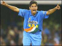ज़िम्बाब्वे के खिलाड़ियों को भारत के नवोदित तेज़ गेंदबाज़ इरफ़ान पठान ने ज़ोरदार झटका दिया. ज़िम्बाब्वे के दो विकेट पहले ओवर में ही गिर गए. इरफ़ान पठान ने मैच की चौथी गेंद पर ही सिबांदा को लक्ष्मण के हाथों कैच आउट करा दिया. जबकि छठी गेंद पर विकेटकीपर तटेंडा टैबू बिना कोई रन बनाए एलबीडब्लू आउट हो गए. इसके बाद टीम में शामिल किए गए अमित भंडारी ने भी अपना करिश्मा दिखाया. इरफ़ान पठान को चार और अमित भंडारी को तीन विकेट मिले. बालाजी और आशीष नेहरा ने एक-एक विकेट लिए. ज़िम्बाब्वे की ओर से मत्सीकेन्यरी ने सबसे ज़्यादा 36 रन बनाए. कार्लाइल ने 28 और अर्वाइन ने 23 रनों का योगदान दिया. |
