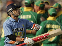 इसके बाद गौतम गंभीर 11, वीरेंदर सहवाग 30, कप्तान राहुल द्रविड़ छह रन बनाकर पवेलियन लौट गए. द्रविड़ के आउट होने के समय भारत का स्कोर था पाँच विकेट पर 71 रन. फिर युवराज और क़ैफ़ ने छठे विकेट के लिए 81 रन जोड़कर पारी संभाली. युवराज 53 और कैफ़ 46 रन बनाकर आउट हुए. कैफ़ के जाने के समय पारी का स्कोर था सात विकेट पर 167 रन. इसके बाद अगरकर 11, महेंद्र सिंह धोनी 14 और हरभजन सिंह बिना खाता खोले आउट हो गए और इस तरह 188 रन पर भारतीय पारी का अंत हो गया. दक्षिण अफ़्रीका की ओर से शॉन पॉलक और एंड्रयू हॉल ने तीन-तीन विकेट लिए. भारतीय टीम राहुल द्रविड़ (कप्तान), वीरेंद्र सहवाग (उप कप्तान), सचिन तेंदुलकर, गौतम गंभीर, युवराज सिंह, मोहम्मद कैफ़, महेंद्र सिंह धोनी, सुरेश रैना, इरफ़ान पठान, अजित अगरकर, मुरली कार्तिक, हरभजन सिंह, एस श्रीसंत, रुद्र प्रताप सिंह और जेपी यादव दक्षिण अफ़्रीका टीम ग्रैम स्मिथ (कप्तान), ज़ाक कैलिस, योहन बोटा, मार्क बाउचर, एबी डी वेलियर्स, एंड्रयू हॉल, जस्टिन केम्प, शार्ल लंगेफ़ेल्ट, एल्बी मॉर्केल, एंड्रयू नेल, मखाया एंटिनी, जस्टिन ऑन्टॉन्ग, रॉबिन पीटरसन, शॉन पॉलक, एशवेल प्रिंस |