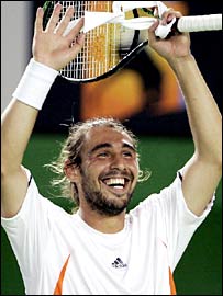 साइप्रस के मार्कोस बागदैतिस ने दूसरी वरीयता प्राप्त खिलाड़ी एंडी रॉडिक को हराकर ऑस्ट्रेलियन ओपन में सनसनी फैला दी है. उन्होंने चौथे दौर के मुक़ाबले में रॉडिक को 6-4, 1-6, 6-3, 6-4 से हरा दिया. पहला सेट हारने के बाद जब रॉडिक ने दूसरा सेट 6-1 से जीता तो लगा कि अब वे बाज़ी पलट देंगे लेकिन उन्हें इसका मौक़ा नहीं मिला. फ़ेडरर ऑस्ट्रेलियन ओपन के पिछले वर्ष के चैंपियन रॉजर फ़ेडरर का कहना है कि टॉमी हैस के ख़िलाफ़ मैच को वे बहुत अहम मानते हैं क्योंकि इस मैच में उनकी असली परीक्षा होगी. अब तक शानदार खेल का प्रदर्शन करके चौथे दौर में पहुँचे फ़ेडरर ऑस्ट्रेलियन ओपन में कोई सेट नहीं हारे हैं लेकिन माना जा रहा है कि हैस उन्हें कड़ी चुनौती देंगे. फेडरर ने स्वीकार किया, "पहले भी उनके ख़िलाफ़ खेलते हुए मुझे कुछ दिक्कतें आई थीं." नलबैंडियन अर्जेंटीना के डेविड नलबैंडियन लगातार चौथी बार ऑस्ट्रेलियन ओपन के क्वार्टर फ़ाइनल दौर तक पहुँचे हैं. टॉमी रोबर्दो को 6-3, 6-0, 2-6, 6-2 से हराकर वे क्वार्टर फ़ाइनल तक पहुँचे हैं और वे काफ़ी अच्छे फॉर्म में माने जा रहे हैं. नलबैंडियन सेमी फ़ाइनल में पहुँचने के लिए फ्रांस के फैब्रिस सैंटोरो से भिड़ेंगे. महिला वर्ग महिला वर्ग की शीर्ष खिलाड़ी लिंडसी डेवनपोर्ट ने रूस की स्वेतलाना कुज़नेत्सोवा को हराकर क्वार्टर फ़ाइनल में जगह बना ली है.