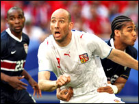 मैच में हमेशा ही चेक गणराज्य का पलड़ा भारी रहा. उन्होंने मैदान पर अपने प्रदर्शन से सबका मन जीत लिया. बरोस की ग़ैर मौजूदगी में पॉवेल नेदवेद ने कमाल का खेल दिखाया. पाँचवें मिनट में ही नेदवेद ने एक शानदार मूव बनाया. ग्रिगेरा के शॉट पर शानदार हेडर लगाया कोलेर ने और पहली बढ़त दिलाई. ऐसा नहीं था कि अमरीकी खिलाड़ियों के पास गेंद नहीं थी. लेकिन वे इसका लाभ नहीं उठा पाए. एक बार तो रेयना का शॉट गोलकीपर चेच को छका गया लेकिन गेंद गोलपोस्ट से बाहर चली गई. |