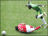 खेल में पहला गोल दागने के बाद तो खेल स्विट्ज़रलैंड के पक्ष में होता चला गया. अपने कप्तान जॉँ- पाल अबालो और डिफ़ेंडर लुडोविच की ग़ैर मौजूदगी में टोगो की टीम कई बार लड़खड़ाती हुई नज़र आई. हालांकि टोगो के फ़ॉरवर्ड खिलाड़ी एमैनुयल अदीबेओर और मोहम्मद कादेर ने स्विट्ज़रलैंड की रक्षा पंक्ति को कई बार घेरा. दूसरे हाफ़ में स्विट्ज़रलैड को गोल करने का एक मौका तब मिला जब रेफ़ाएल विकी ने बार्नेटो को गेंद दी लेकिन उनके शॉट को टोगो के गोलकीपर कोस्सी अगास्सा ने लपक लिया. एक बार एलेक्ज़ेंडर फ़्राई का शॉट टोगो के किसी खिलाड़ी से जा टकराया और गेंद गोल क्षेत्र से दूर चली गई. स्विट्ज़रलैंड ने गोल का एक और मौका तब गवाँया जब याकिन के शॉट को टोगो के गोलकीपर ने बचा लिया. अगर स्विट्ज़रलैंड ने ये मौके गवाएँ न होते तो वो और भी बड़े अंतर से टोगो को हरा सकता था. खेल के 88वें मिनट में एलेक्ज़ेंडर फ़्राई को बदला गया. और इसके तुरंत बाद ट्रैनक्विलो बार्नेटो ने स्विट्ज़रलैंड के लिए दूसरा गोल कर अपनी टीम को 2-0 से आगे कर दिया. इस जीत के बाद स्विट्ज़रलैंड और दक्षिण कोरिया ग्रुप जी के शीर्ष पर हैं. दोनों के चार अंक हैं. |
