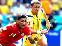 मैच में दोनों टीमों ने बहुत ही रक्षात्मक खेल दिखाया और मैच में रोमांच के बहुत कम अवसर आए. मैच के 20वें मिनट में यूक्रेन को गोल करने का एक अच्छा मौक़ा मिला. एंतोलिय टिमोसचूक ने ट्यूनीशिया के डिफ़ेंडर को चकमा देकर शेवचेन्को को पास देने की कोशिश की लेकिन ट्यूनीशिया के गोलकीपर ने अच्छा बचाव किया. दूसरे हाफ़ में सिर्फ़ 10 खिलाड़ियों के बल पर ट्यूनीशिया ने अच्छे खेल का प्रदर्शन किया. ट्यूनीशिया को एक अच्छा मौक़ा भी मिला. लेकिन यूक्रेन के स्ट्राइकर वोरोनिन के हाथ से लगती हुई गेंद गोलपोस्ट के ऊपर से निकल गई. रेफ़री ने इस पर पेनल्टी नहीं बल्कि कॉर्नर दिया और ट्यूनीशिया इस पर कोई लाभ नहीं उठा पाया. इसके कुछ ही समय बाद शेवचेन्को गेंद लेकर ट्यूनीशिया के गोल की ओर बढ़े. लेकिन ट्यूनीशिया के डिफ़ेंडर करीम से उलझ गए. रेफ़री ने पेनल्टी दिया और शेवचेन्को ने ये मौक़ा नहीं गँवाया और गोल करके 1-0 की बढ़त हासिल कर ली. |