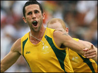 एक समय ऐसा लगा मेजबान जर्मनी को हार का सामना करना पड़ेगा. लेकिन उन्होंने मैच में ज़बरदस्त वापसी की. उन्होंने आक्रमक खेल का प्रदर्शन किया. जल्द ही जर्मनी को अपने दूसरे दौर के आक्रमण का लाभ मिला. 46वें मिनट में मॉरिज़ फ़ियोर्स्त ने गोल करके स्कोर 3-2 कर दिया. उसके बाद तो लगा जर्मन खिलाड़ी फ़ॉर्म में आ गए. एक के बाद एक आक्रमण और 49वें मिनट में एमरलिंग ने गोल करके स्कोर बराबर कर दिया. ऑस्ट्रेलिया पर दबाव बढ़ता जा रहा था और घरेलू दर्शकों के बीच उत्साह में नज़र आ रही थी जर्मन टीम. उनके टॉप खिलाड़ी क्रिस्टोफ़र ज़ेलर ने 55वें मिनट में एक और गोल करके अपनी टीम को बढ़त दिला दी. अब जर्मनी के पक्ष में स्कोर हो गया- 4-3. अब ऑस्ट्रेलिया की टीम स्कोर बराबर करने के लिए जूझने लगी. लेकिन उन्हें सफलता नहीं मिल पाई और जर्मनी ने लगातार दूसरी बार विश्व कप का ख़िताब जीत लिया. इस प्रतियोगिता में भारतीय टीम 11वें और पाकिस्तान की टीम छठे स्थान पर रही. स्पेन को तीसरा और दक्षिण कोरिया का चौथा स्थान मिला. फ़ाइनल मैच के बाद टीमों की स्थिति: 1. जर्मनी | इससे जुड़ी ख़बरें हॉकी में 11वें स्थान पर पहुँचा भारत17 सितंबर, 2006 | खेल भारत हॉकी मैच में 2-3 से हारा06 सितंबर, 2006 | खेल हॉकी स्टार संदीप की हालत चिंताजनक22 अगस्त, 2006 | खेल हॉकी वर्ल्ड कप के लिए भारतीय टीम17 अगस्त, 2006 | खेल नीदरलैंड्स चैम्पियन, भारत तीसरे नंबर पर25 जून, 2006 | खेल भारत 'अज़लान शाह' से बाहर23 जून, 2006 | खेल भास्करन बने हॉकी टीम के नए कोच04 अप्रैल, 2006 | खेल महिला हॉकी टीम नहीं जीत पाई स्वर्ण25 मार्च, 2006 | खेल | |||||||||||||||||||||||||||||||||||||||||||||||||||||||||||||||||||||||||||||||||||||||||||||