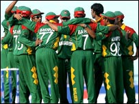 श्रीलंका के विशाल 302 रनों के जवाब में बांग्लादेश की शुरुआत अच्छी नहीं रही और एक समय उनके चार विकेट सिर्फ़ 78 रन पर गिर गए. शहरयार नफ़ीस पाँच, मोहम्मद अशरफ़ुल 18, कप्तान हबीबुल बशर शून्य और आफ़ताब अहमद ने 33 रन बनाए. दूसरे छोर से सक़ीबुल हसन डटे रहे लेकिन उन पर भी दबाव बढ़ रहा था क्योंकि आवश्यक रन गति तेज़ी से बढ़ रही थी. इसी कोशिश में कई बल्लेबाज़ सस्ते में निपट गए. लेकिन विकेटकीपर फ़रहद रज़ा ने 34 रन बनाए और आख़िरी ओवरों में मशरफ़ मुर्तज़ा ने 30 और अब्दुल रज़्ज़ाक़ ने 21 रन बनाए. सक़ीबुल हसन ने सर्वाधिक 69 रन बनाए और नाबाद रहे. श्रीलंका की ओर से फ़रवीज़ महारूफ़ ने तीन विकेट लिए. चमिंडा वास को दो विकेट मिले. जबकि दिलहारा फ़र्नांडो, मुथैया मुरलीधरन और सनत जयसूर्या को एक-एक विकेट मिला. |