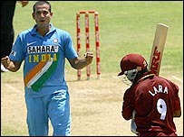 रामनरेश सरवन और ब्रायन लारा ने तीसरे विकेट के लिए 39 रन जोड़े. उस समय लग रहा था कि दोनों मिलकर वेस्टइंडीज़ को संकट से निकाल लेंगे. लेकिन ऐसा हुआ नहीं. दोनों के आउट होते ही वेस्टइंडीज़ खिलाड़ियों का आना-जाना शुरू हो गया. लारा ने 22 और सरवन ने 13 रन बनाए. इन दोनों के अलावा बाद में ड्वेन स्मिथ ने भी 13 रन बनाए. मुनाफ़ पटेल ने चार और इरफ़ान पठान ने तीन विकेट झटके. जबकि अजित अगरकर, अनिल कुंबले और ज़हीर ख़ान को एक-एक विकेट मिले. यह मैच विश्व कप से पहले वेस्टइंडीज़ की पिचों पर भारत की असली परीक्षा माना जा रहा है. इसके पहले खेले गए अभ्यास मैचों में दोनों ही टीमों ने आसान जीत दर्ज की थी. भारत ने नीदरलैंड को 182 रनों से हरा दिया था. वेस्टइंडीज़ के ख़िलाफ़ अभ्यास मैच के बाद 17 मार्च को भारत का विश्व कप में अभियान शुरू होगा. भारत का पहला मैच बांग्लादेश के ख़िलाफ़ पोर्ट ऑफ़ स्पेन में है. भारत ग्रुप बी में है. इस ग्रुप में भारत के अलावा श्रीलंका, बांग्लादेश और बरमूडा की टीमें हैं. |