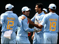 आफ़ताब अहमद ने तेज़ी से रन बनाने की कोशिश की और कुछ हद तक सफल भी हुए. लेकिन रन बनाने की कोशिश में उन्हें पवेलियन भी लौटना पड़ा. उन्होंने 40 रन बनाए. सक़ीबुल हसन के पाँच और मोहम्मद अशरफ़ुल के 11 रन पर आउट हो जाने के बाद बांग्लादेश की टीम मुश्किलों से घिर गई. लेकिन कप्तान हबीबुल बशर और मुशफ़िकुर रहीम ने छठे विकेट के लिए 59 रन जोड़कर थोड़ी उम्मीद जगाई. लेकिन इन दोनों के आउट होते ही दबाव फिर तेज़ी से बढ़ा. क्योंकि आवश्यक रन गति बढ़ती जा रही थी. बशर 43 और मुशफ़िकुर रहीम 35 रन बनाकर आउट हुए. आख़िर में मशरफ़ी मुतर्ज़ा ने दिनेश मोंगिया के एक ओवर में चार छक्के लगाकर मैच को मज़ेदार तो किया लेकिन वे भी जानते थे कि जीत दिलाना मुश्किल है. बांग्लादेश की टीम 49 ओवर में नौ विकेट पर 238 रन ही बना सकी. मैच हारने के साथ ही सिरीज़ भी उनके हाथ से गया. |