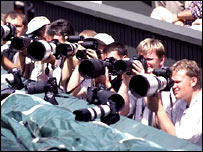 इनके काम में इतना समन्वय और तालमेल रहता है कि पूछिए मत. कभी-कभी तो ये रोबोट की तरह व्यवहार करते हैं. बिल्कुल नपे-तुले अंदाज़ में. किस समय उठना है. कैसे आउट कॉल करनी है. कैसे खिलाड़ियों को गेंद देनी है और कैसे उनकी सेवा में जुटना है. अगर आप किसी कोर्ट पर मैच देख रहे हों, तो मैच के अलावा इन लोगों के काम कर नज़र रखना एक ख़ूबसूरत एहसास है. कभी-कभी किसी लाइंसमैन की तेज़ कॉल पर दर्शक दीर्घा में हँसी के फ़व्वारे छूट पड़ते हैं तो कभी-कभी उन्हें खिलाड़ियों के ग़ुस्से का सामना भी करना पड़ता है. जो भी हो, इनके काम की दाद तो देनी ही पड़ेगी. ***************************************************************** विंबलडन तो संगम है... हर बड़ी प्रतियोगिता में प्रेस के लिए ख़ास इंतज़ाम होता है और जब बात विंबलडन की हो तो पूछना ही क्या. दुनियाभर के प्रेस को अच्छी जगह मिले और प्रतियोगिता को अच्छा कवरेज मिले, इसकी इतनी अच्छी व्यवस्था बहुत कम देखने को मिलती है.
