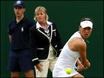 विंबलडन में तीसरी वरीयता प्राप्त एंडी रॉडिक कभी-कभी कुछ ज़्यादा ही चीखते-चिल्लाते हैं. दूसरे दौर के मैच में अच्छी ख़ासी स्थिति में थे. लेकिन बेचैन थे. ग़ुस्सा दिखाना, अंपायर पर टिप्पणी करना, बॉल ब्वॉय पर खीझना- ये सब हुआ एक आसान मैच में. दूसरे दौर के इस मैच में उनके सामने थे कम अनुभवी थाईलैंड के दनई उडोमचोक. दो सेट में शानदार जीत हासिल करने वाले रॉडिक कोर्ट पर इतने बेचैन दिख रहे थे कि पूछिए मत. दर्शक उनकी विशेष टिप्पणी का लुत्फ़ भी उठा रहे थे. लेकिन तीसरे सेट में रॉडिक को इसका नुक़सान भी हुआ. उनकी सर्विस भी ब्रेक हुई और मैच टाई ब्रेकर में गया. ख़ैर रॉडिक जीते और अपने बेचैन शिष्य पर हँसते-हँसते जिमी कॉनर्स ने कोर्ट छोड़ा. अब इसके बाद उन्होंने रॉडिक को क्या गुरुमंत्र दिया होगा- ये तो आने वाले मैच देखकर ही पता चलेगा. ***************************************************************** हिंगिस के लिए मारामारी मार्टिना हिंगिस जबसे वर्षों बाद अंतरराष्ट्रीय कोर्ट पर लौटीं हैं, उनमें ग़जब का आत्मविश्वास दिख रहा है. विंबलडन में तीसरे दिन उनका मैच एक छोटे कोर्ट पर हो रहा था.
