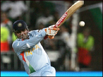 लेकिन सहवाग के आउट होने के बाद भारत ने जल्दी ही दो विकेट और खो दिए. गंभीर 58 रन बनाकर आउट हुए और उनके पीछे-पीछे उथप्पा भी चलते बने. कप्तान धोनी केवल 10 ही रन बना पाए. पर आउट होने से पहले सहवाग और गंभीर ने भारत को एक मज़बूत शुरूआत तो दे ही दी थी. युवराज सिंह ने मैदान पर आकर मैच की धार वहीं से पकड़ी जहाँ से सहवाग और गंभीर छोड़ गए थे. युवारज ने रनों की धार को बरकरार रखा. उनकी रनों की धार के सामने इंग्लैंड के गेंदबाज़ मानो टिक ही नहीं पाए. युवराज का कोपभाजन बने इंग्लैंड के स्टूयर्ट ब्रॉड जिनके एक ओवर में युवराज ने लगातार छह छक्के जड़े. 50 रन तो उन्होंने केवल 12 गेंदों में पूरे कर लिए. ट्वेन्टी-20 में ये सबसे तेज़ अर्धशतक रहा. युवराज की 58 रनों की पारी में तीन चौके और सात छक्के शामिल रहे. इंग्लैंड की पारी भारत विशाल स्कोर खड़ा कर बड़े अंतर से जीत की उम्मीद लगाए हुए था लेकिन इंग्लैंड ने ऐसा होने नहीं दिया. इंग्लैंड के बल्लेबाज़ों ने भी आक्रमक खेल दिखाया और उनके बल्लों से चौकों-छक्कों की बरसात होती रही. सलामी बल्लेबाज़ों डेरन मैडी और विक्रम सोलंकी ने अच्छी शुरूआत की. मैडी ने 29 रन बनाए तो सोलंकी ने 43. लेकिन पठान ने दोनों के विकेट चटका कर भारत को अहम विकेट दिलवाए. इसके बाद पीटरसन ने भी आकर रन पीटे. वे 39 रन बनाकर मैदान पर जमे हुए थे लेकिन हरभजन सिंह ने ठीक वक़्त पर उनका विकेट लेकर भारत को मैच में बनाए रखा. इस वक़्त इंग्लैंड तीन विकेट गवाँकर 126 रन बना चुका था. इंग्लैंड के विकेट समय-समय पर गिरते रहे लेकिन इस बीच रनों की रफ़्तार कम नहीं हुई. आख़िर में इंग्लैंड भले ही हार के करीब पहुँच गया था लेकिन उसने रन-रेट कम नहीं होने दिया और करीब 10 के रन रेट से खेला. इंग्लैंड निर्धारित 20 ओवरों में 200 रन बना पाया और भारत से 18 रनों से हार गया. लेकिन तेज़ गति से रन बनाकर उसने भारत की बड़े अंतर से जीत की उम्मीद पूरी नहीं होने दी. भारत की ओर से पठान ने तीन विकेट लिए. | इससे जुड़ी ख़बरें 'युवराज ने इंग्लैंड के छक्के छुड़ाए'20 सितंबर, 2007 | खेल की दुनिया युवराज ने लगाए एक ओवर में छह छक्के19 सितंबर, 2007 | खेल की दुनिया धोनी बने वनडे टीम के कप्तान18 सितंबर, 2007 | खेल की दुनिया न्यूज़ीलैंड ने भारत को 10 रनों से हराया16 सितंबर, 2007 | खेल की दुनिया 'बॉल आउट' नियम के तहत भारत जीता14 सितंबर, 2007 | खेल की दुनिया भारत-स्कॉटलैंड मैच बारिश के कारण रद्द13 सितंबर, 2007 | खेल की दुनिया | |||||||||||||||||||||||||||||||||||||||||||||||||||||||||||||||||||||||||||||||||||||||||||||