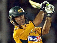 ऑस्ट्रेलिया ने टॉस जीतकर पहले बल्लेबाज़ी करने का फ़ैसला किया. उसकी शुरुआत भी शानदार रही. एडम गिलक्रिस्ट ने आरपी सिंह के पहले ओवर में लगातार तीन चौके लगाए लेकिन फिर उसी ओवर में आउट भी हो गए. गिलक्रिस्ट ने 12 रन बनाए. हेडन फ़ॉर्म में नज़र नहीं आ रहे थे. बाद में उन्होंने कुछ अच्छे हाथ ज़रूर दिखाए लेकिन 17 रन बनाकर हरभजन सिंह की गेंद पर क्लीन बोल्ड हो गए. एंड्रयू साइमंड्स ने तीसरे विकेट के लिए पोंटिंग के साथ मिलकर 50 रनों की साझेदारी की लेकिन साइमंड्स दुर्भाग्यशाली रहे और रन आउट हो गए. उन्होंने 20 रन बनाए. इसी बीच पोंटिंग ने सिर्फ़ 34 गेंद पर अपना अर्धशतक पूरा किया. लेकिन ब्रैड हॉज कुछ ख़ास नहीं कर पाए और दो रन बनाकर ही पवेलियन लौट गए.