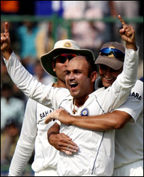 ब्रैड हैडिन को 17 रन पर आउट कर अनिल कुंबले ने इस टेस्ट सिरीज़ में अपना पहला विकेट लिया. उसके बाद कैमरून व्हाइट और क्लार्क ने मिलकर भारतीय गेंदबाज़ों को काफ़ी परेशान किया. आख़िरकार एक बार फिर सहवाग ने अच्छी गेंदबाज़ी ने कैमरून व्हाइट को आउट कर अहम सफलता दिलाई. व्हाइट ने 44 रन बनाए. व्हाइट और क्लार्क ने 106 रनों की साझेदारी की. ब्रेट ली का विकेट अनिल कुंबले को मिला. जबकि क्लार्क का अहम विकेट अमित मिश्रा के खाते में गया. क्लार्क ने 112 रन बनाए. मिचेल जॉनसन आख़िरी विकेट के रूप में कुंबले का शिकार बने. उन्होंने 15 रन बनाए. क्लार्क के 112 रन के अलावा कप्तान रिकी पोंटिंग ने 87, मैथ्यू हेडन ने 83, साइमन कैटिच ने 64 और माइकल हसी ने 53 रनों का योगदान दिया. |