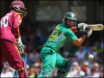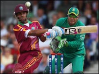 लेकिन उनकी पारी टीम के लिए काम नहीं आई. वेस्टइंडीज़ ने काफ़ी ख़राब शुरुआत की और उनके दोनों सलामी बल्लेबाज़ 13 रन पर पवेलियन लौट चुके थे. फ़्लेचर तो अपना खाता भी नहीं खोल पाए जबकि क्रिस गेल पाँच रन ही बना पाए. ड्वेन ब्रैवो ने भारत के ख़िलाफ़ बेहतरीन पारी खेली थी. लेकिन इस मैच में उनके बल्ले से सिर्फ़ 19 रन ही निकले. प्रदर्शन इस मैच में पहले बल्लेबाज़ी करते हुए दक्षिण अफ़्रीका की टीम ने 20 ओवर में सात विकेट पर 183 रन बनाए थे. हालाँकि टॉस वेस्टइंडीज़ ने जीता था लेकिन कप्तान क्रिस गेल ने पहले फ़ील्डिंग चुनी.