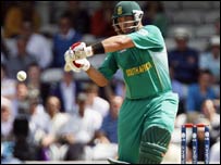 दक्षिण अफ़्रीका की शुरुआत शानदार रही. बेहतरीन फ़ॉर्म में चल रहे ज़ाक कैलिस और कप्तान ग्रैम स्मिथ ने धमाकेदार शुरुआत की. उन्होंने क़रीब 10 रन प्रति ओवर की गति से रन बनाए. पहले आउट हुए ग्रैम स्मिथ. उन्होंने 18 गेंद पर 31 रन बनाए. इसके बाद कैलिस और गिब्स ने मोर्चा संभाला और स्कोर को 100 के पार ले गए. कैलिस दूसरे विकेट के रूप में आउट हुए. उन्होंने 31 गेंद पर 45 रन बनाए.