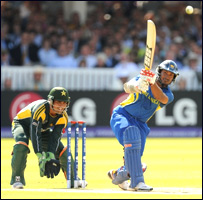 श्रीलंका ने टॉस जीतकर पहले बल्लेबाज़ी करने का फ़ैसला किया. उम्मीद से उल्ट श्रीलंकाई पारी कमज़ोर साबित हुई और शुरुआत ही ख़राब हुई. केवल कप्तान कुमार संगकारा बल्ले से कमाल दिखा पाए. उनके नाबाद 64 रनों की बदौलत ही श्रीलंका सम्मानजनक स्कोर खड़ा कर पाया. श्रीलंका की टीम ने 20 ओवरों में छह विकेट में 138 रन बनाए. श्रीलंकाई पारी की शुरुआत टीएम दिलशान और जयसूर्या ने की. श्रीलंका को पहले ही ओवर में तब झटका लगा जब दिलशान बिना कोई रन बनाए मोहम्मद आमिर का शिकार बने. दूसरे ही ओवर में अब्दुल रज़्ज़ाक ने श्रीलंका को दूसरा झटका दिया जब उन्होंने ज़ेहन मुबारक को पविलियन लौट दिया. वे भी शून्य पर आउट हुए. यानी श्रीलंका का स्कोर था दो विकेट पर दो रन. इसके बाद जयसूर्या ने दो चौक्के और एक छक्का भी लगाया लेकिन अब्दुल रज़्ज़ाक ने फिर अपना कमाल दिखाया. वे केवल 17 रन बनाकर रज़्ज़ाक की गेंद पर आउट हो गए. चौथा विकेट जयवर्धने के रुप में छठे ओवर में गिरा. वे मात्र एक रन बनाकर अब्दुल रज़्ज़ाक की गेंद पर आउट हुए. केवल कप्तान कुमार संगकारा एक छोर पर डटे रहे और दूसरे छोर से बल्लेबाज़ों का आना-जाना लगा रहा. पाकिस्तानी गेंदबाज़ों ने श्रीलंका के बल्लेबाज़ों को पैर जमाने का मौका ही नहीं दिया. एक समय श्रीलंका का स्कोर था 13वें ओवर में छह विकेट पर 70 रन. वहाँ से कुमार संगकारा ने पारी को संभाला और स्कोर को 100 के पार ले गए. आख़िरी ओवरों में एंजलो मैथ्यूस ने कुछ हद तक संगकारा का साथ दिया और नाबाद 35 रन बनाए. संगकारा ने 52 गेंदों में सात चौकों की मदद से 64 रन का स्कोर खड़ा किया. |